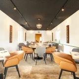 Sur notre belle terrasse ou dans une de nos salles, Céline Alexandre et son équipe vous accueillera avec en ligne conductrice "bien être et simplicité".